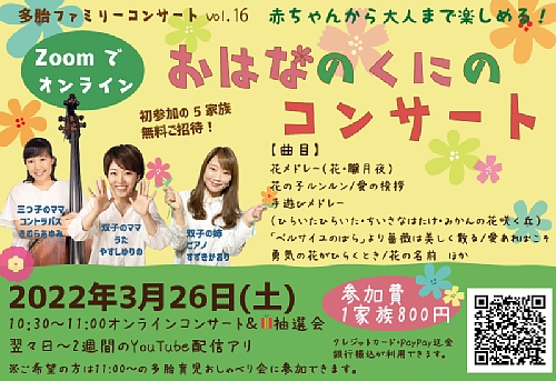 3/26(土)にオンラインで開催する多胎ファミリーコンサート Vol.16