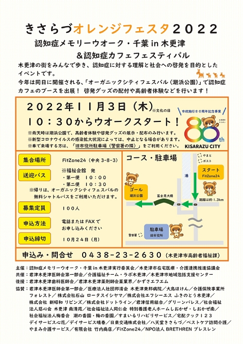 2022 年 10 月 21 日 金曜日認知症メモリーウオーク・千葉in木更津 きさらづオレンジフェスタ2022 実行委員会