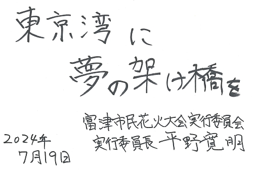 2024 年 7 月 19 日 金曜日富津市民花火大会実行委員会 実行委員長・平野寛明さんに、